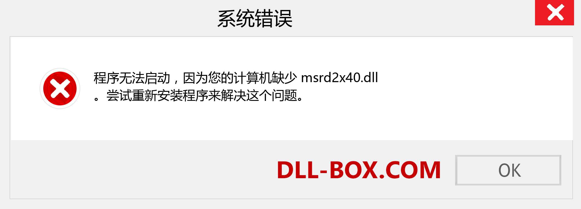 4. 由于未找到 msrd2x40.dll,代码执行无法继续。重新安装程序可能会解决此问题。